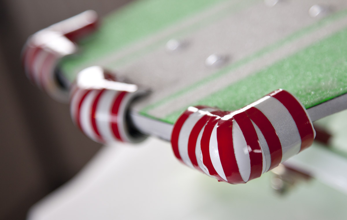 | Glow in the dark pinstripes added and covered with clear Vicious grip tape |